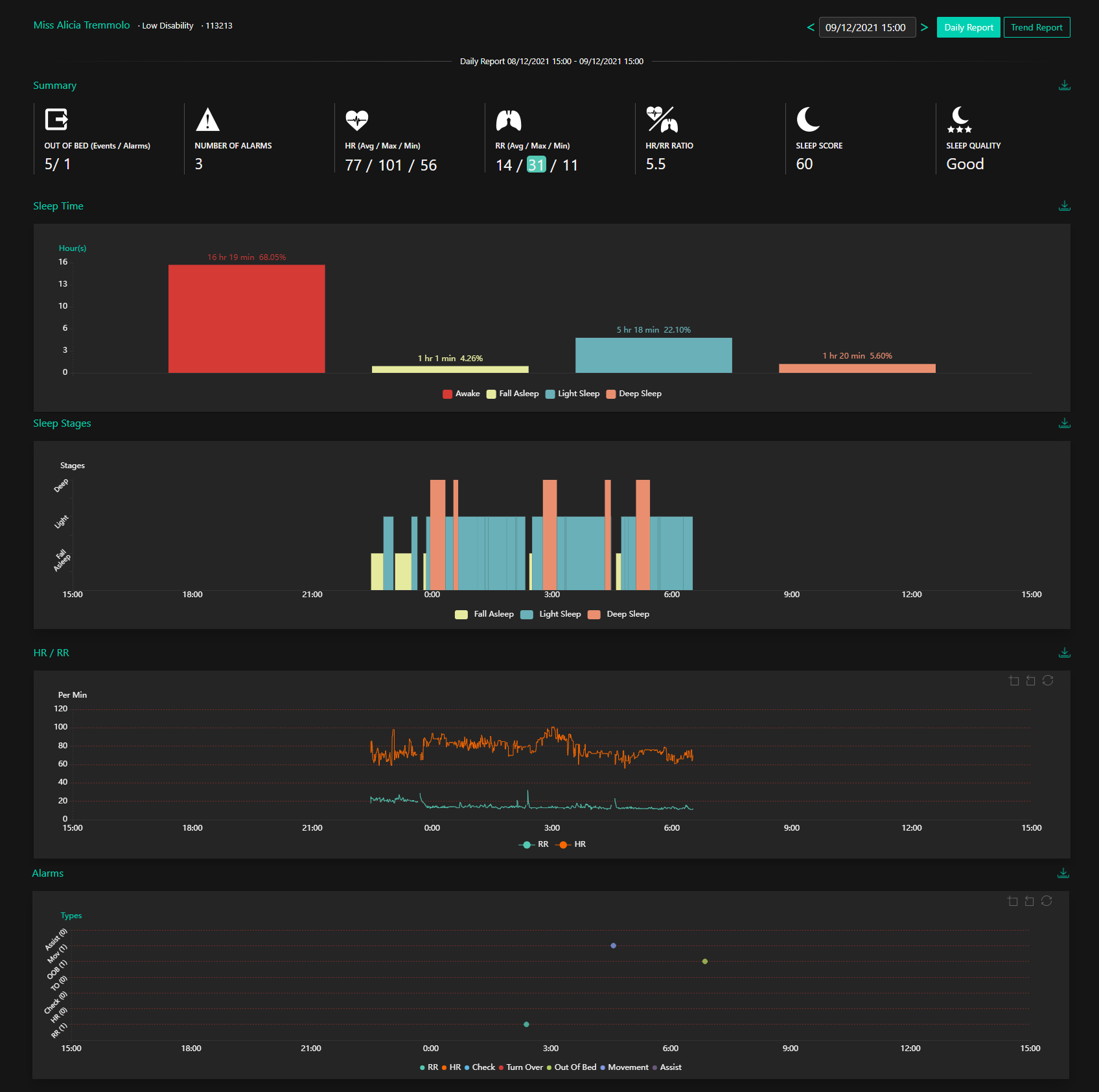 When the Client Report Page opens, the user will be presented with the last 24 hours Daily Report for the individual client selected. This is the default view for this page and displays a variety of detailed reports relating to the recent activity history of the individual client selected.