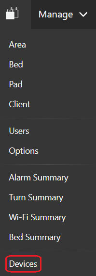 Clicking on the Devices menu item (circled) will display the following page: