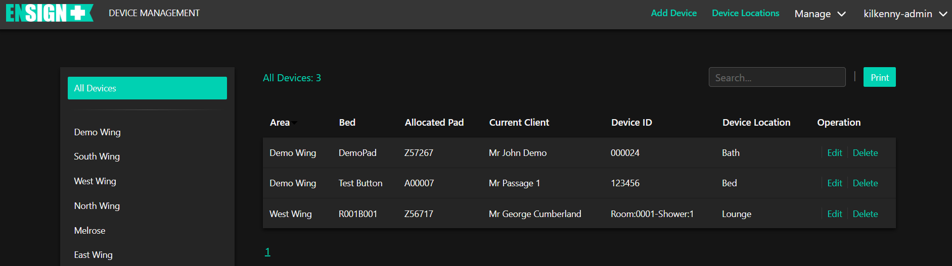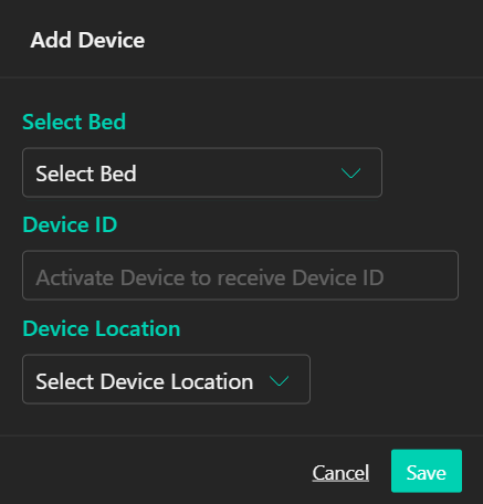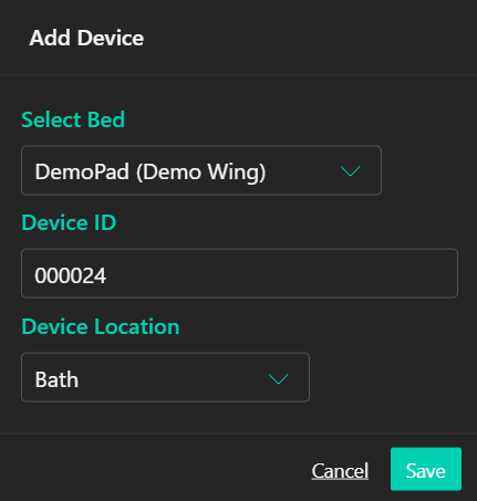 The Edit box uses the same options as adding a Device. Select the bed and Device Location. A device may be assigned to another room if you have moved it.
