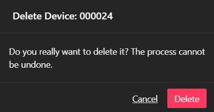 Confirm you wish to delete the Device by clicking "Delete". If you have changed your mind, click "Cancel".