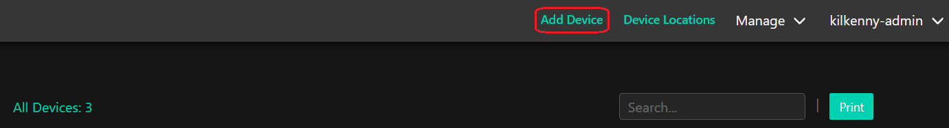 By default there will be no devices displayed. To add a device, click "Add Device" (circled).
