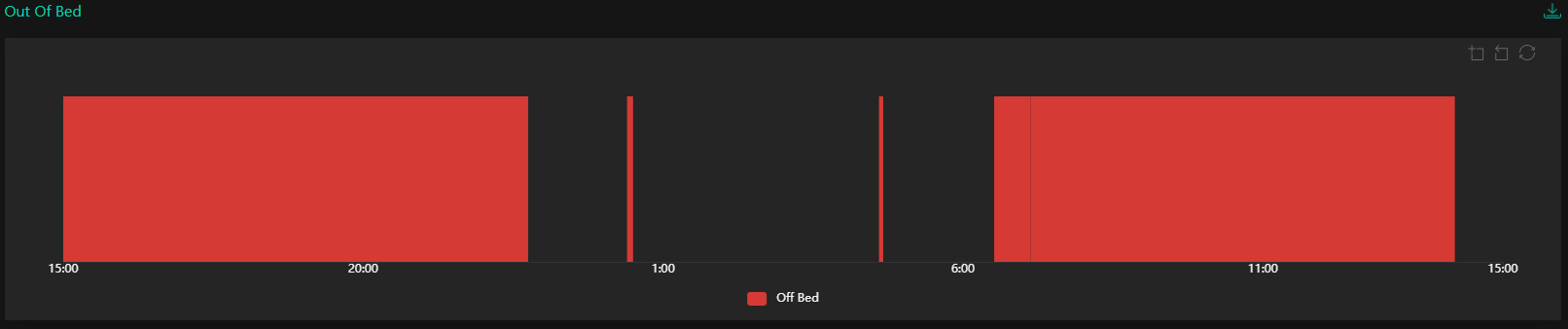 Hovering with the cursor over the Out Of bed event will also display the duration of the Out Of bed event.