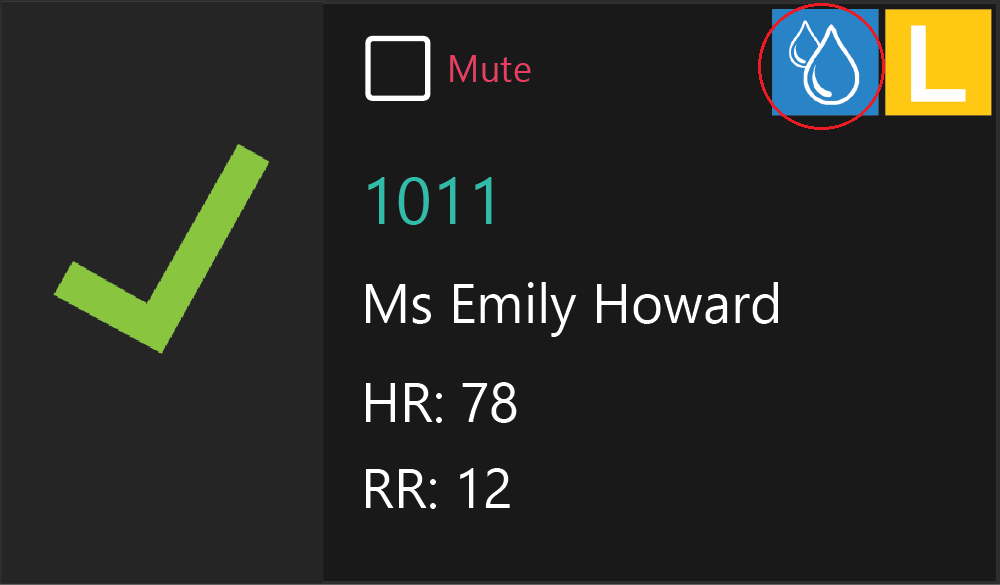This alarm condition (circled) will occur if the patient has been incontinent. This requires a separate incontinence pad to be installed.