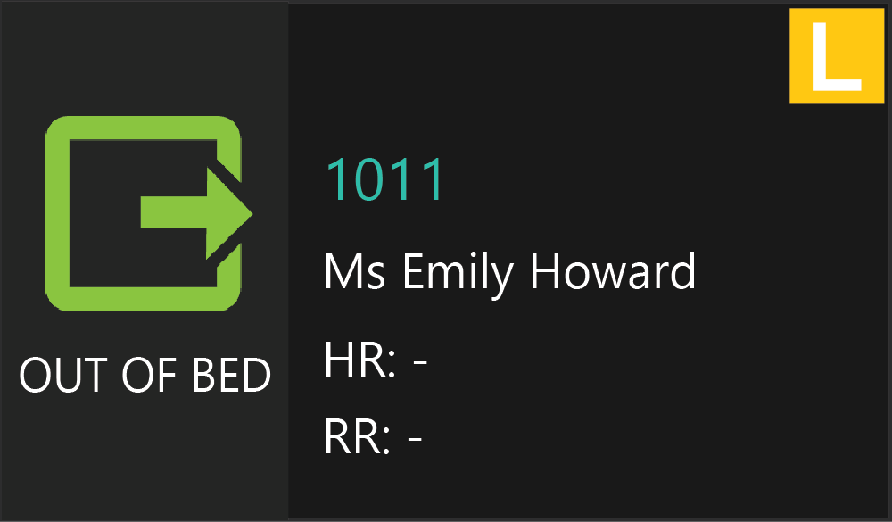 This alarm condition will occur if the patient is out of bed for a duration that is outside the Out of Bed Alarm parameters that have been set in the Client Management -> Alarm Settings page.