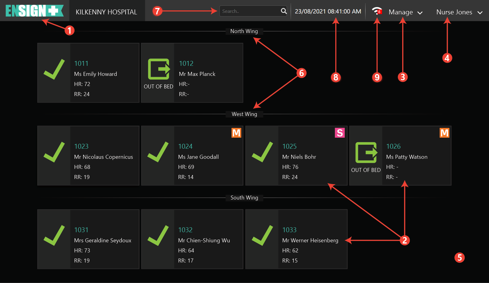 The PSP displays the real time status of each patient. This information is displayed on Individual Patient Cards (IPC).
