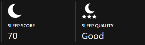Sleep score for the Client based on the time spent falling asleep, in light sleep and in deep sleep. These times are then used with an algorithm to calculate Sleep Quality rating.