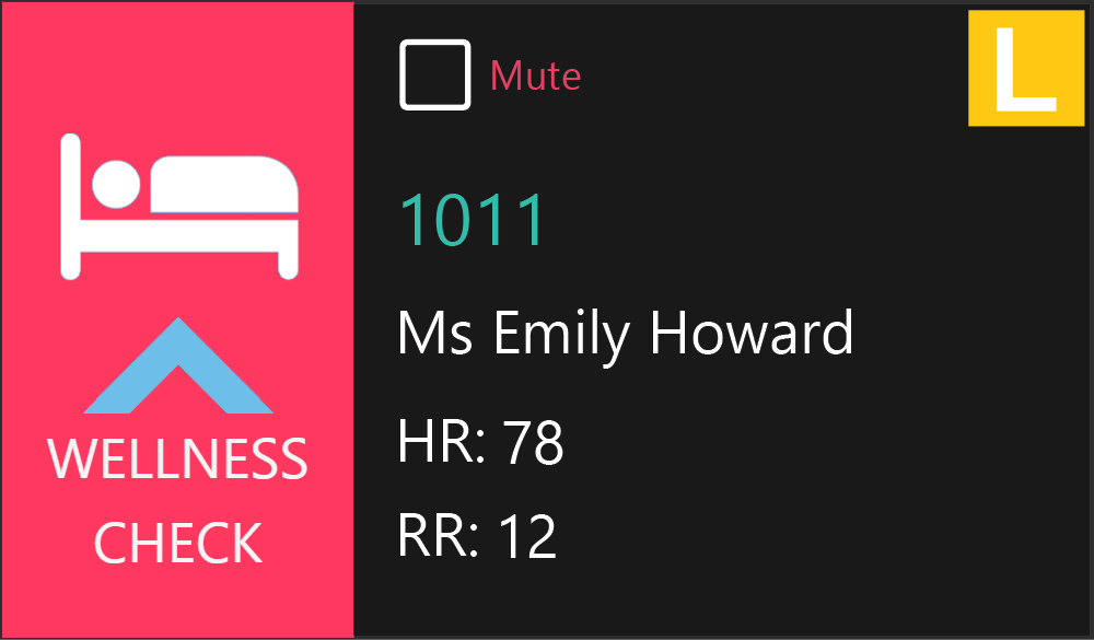 This alarm condition will occur at fixed intervals if the client's BSP has been configured to use the Wellness Check alarm. The time between Wellness Check reminders may be set for at intervals from 5 minutes apart to 6 hours. The Alarm can only be reset by activating a Wellness Check.